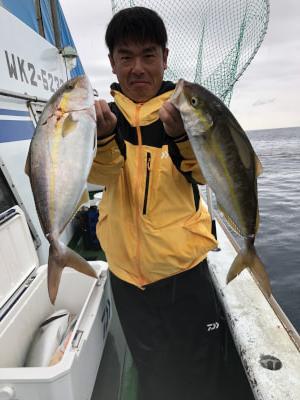 カンパチ | 43〜52cm | 8匹 | 落とし込み | 活けアジ |