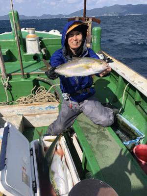 カンパチ | 43〜51cm | 5匹 | 落とし込み | 活けアジ |
