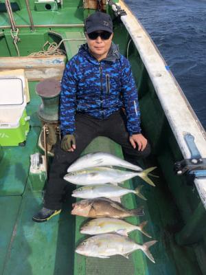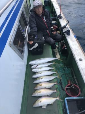 カンパチ | 41〜50cm | 5匹 | 天秤フカセ | オキアミ |