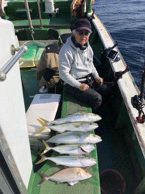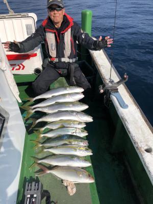 カンパチ | 46〜50cm | 3匹 | 落とし込み | 活けアジ イワシ |