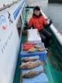 | オニカサゴ、カサゴ五目釣りに出船しました。底物釣りでオニカサゴ5匹、アヤメカサゴ、レンコダイ、青ハタ2匹!明日 オキアミ五目釣りのご予約お待ちしてます。 |
