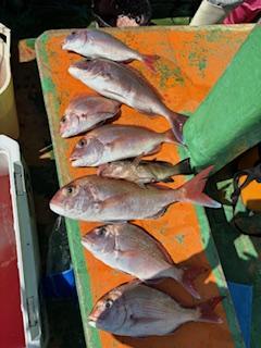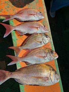 マダイ | 30〜52cm | 7匹 | 竿釣り ハリス5号 錘100号オキアミ | オキアミ | |