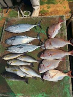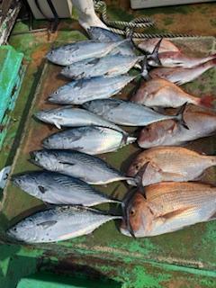 | オキアミの五目釣り良く釣れてます。本日はヤイトガツオも大漁でした。 |