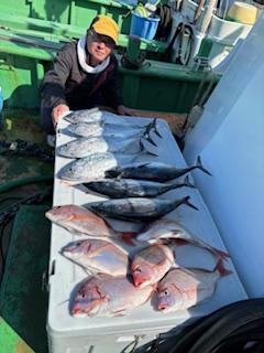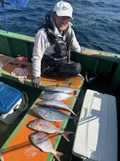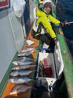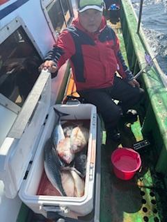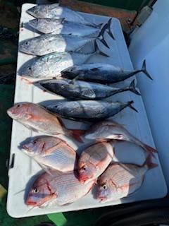 | オキアミの五目釣りマダイは少なかったですがヤイトガツオ船中25匹釣れてました。他イサギも釣れてます。 |