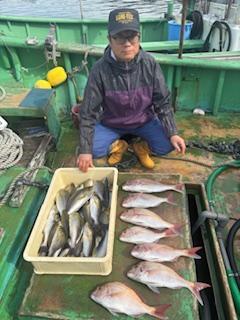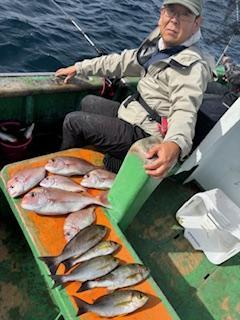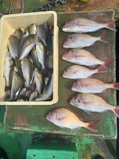 | オキアミの五目釣りイサギ&マダイ良く釣れて良いお土産になりましたマダイ船中23匹釣れてました。明日も出船します少人数ですご予約御待ちしてます。 |