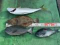 | オキアミの五目釣り真鯛&ヤイトガツオ&イサギとシオ&ハマチもまじり良い御土産になりました。 |