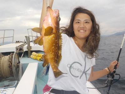 | 海上穏やか潮緩やか雨も降ら曇り空です 活きアジえさ一発ヒラメ狙いゲット命中 アコウ ガシラなど色々竿頭トップヒラメ65p頭にアコウ大中28〜42p6匹など色々と釣れています 今後も期待出来楽しみです 予約受付中 お待ちしています 宜しく詳細 |