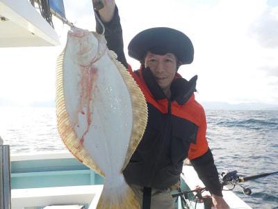 ヒラメ | 56〜65cm | 2匹 | 2本針胴付きハリス6号オモリ70号 | 活き小アジ |