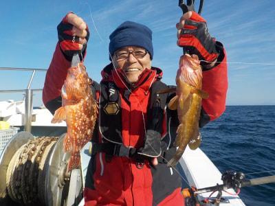 アコウ ガシラ 根魚狙い | 25〜47cm | 2本針胴付きハリス6号オモリ70号 | 活きアジ |