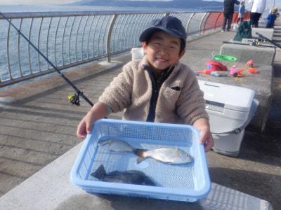ウミタナゴ | 18〜20cm | 2匹 | ウキ釣り ウミタナゴ3号針 ハリス1.5号 オモリ6号 竿3m 棚3ヒロ | オキアミ |