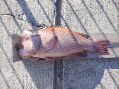 コブダイ | 69.5cm | 1匹 | 落し込み 針ジグヘッド ハリス10号 オモリ20g 竿2.2m 棚底 | バナメイエビ |