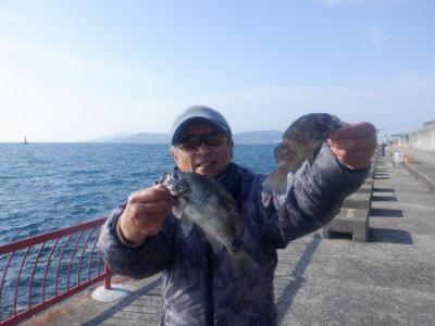 メバル | 18〜22cm | 2匹 | 落とし込み 針7号 ハリス1.7号 オモリ10号 竿4.5m 棚底 | シラサエビ |