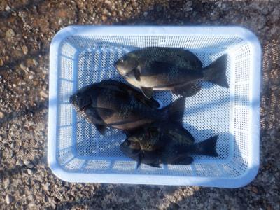 グレ | 20.5〜25cm | 3匹 | ウキ釣り ウミタナゴ8号針 ハリス2.5号 カゴ10号 竿4.5m 棚2.5ヒロ | オキアミ アミエビ |