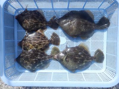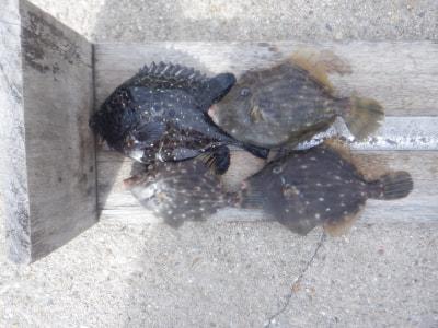 マルハギ | 15.6〜19cm | 5匹 | 落し込み 針カワハギ2号 ハリス2号 オモリ5号 竿8.32ft 棚底 | アサリ |