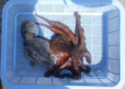 タコ | 0.3〜0.35Kg | 2匹 | タコエギ PE3号 リーダー4号 オモリ30g 竿2m 棚底 |