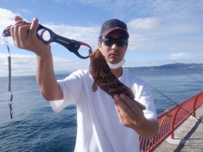 アコウ | 25cm | 1匹 | 落とし込み ジグヘッド20g ハリス5号 オモリなし 竿3m 棚底 | バナメイエビ |
