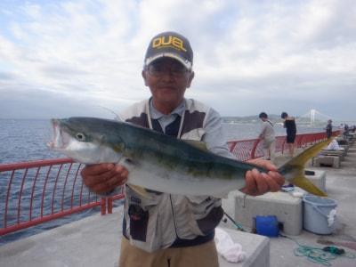 ハマチ | 50cm | 1匹 | ウキ釣り 針チヌ7号 ハリス3号 オモリ天秤付カゴ8号 竿3.2m 棚3.5ヒロ | シラサエビ |