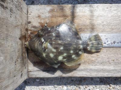 マルハギ | 20cm | 1匹 | 胴突き仕掛 針6号 ハリス3号 オモリ5.5号 竿4.5m 棚底 | アサリ |