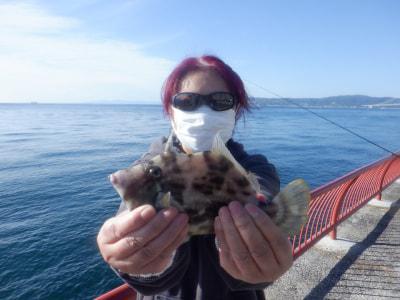 マルハギ | 19cm | 1匹 | 胴突仕掛 針5号 ハリス3号 オモリ6号 竿1.8m 棚底 | アサリ |