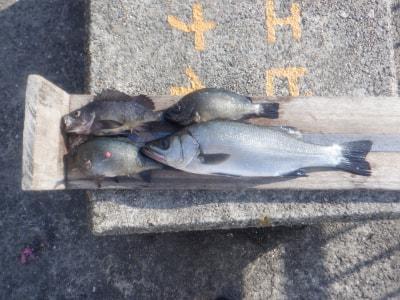 ヒラスズキ | 47.5cm | 1匹 | ウキ釣り 針3号 ハリス2.5号 オモリ1号 竿5.3m 棚2.5ヒロ | シラサエビ |