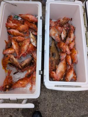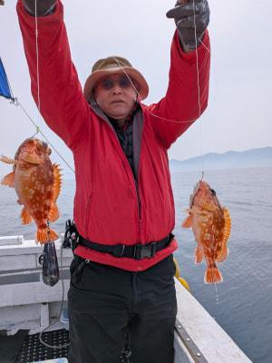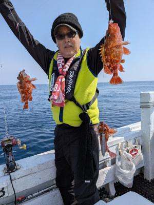 | ベタ凪の心地よい春の海上でした、本日も上潮が速かったです!根魚釣りで出船しました、アコウ、ガシラ、沖メバル他がお土産になりました、4月はメダイ、沖メバル、根魚、フカセ釣りでヒラマサ、イサキ、桜鯛、そして来遊あればヤリイカにも〃そしてタイラバも… |