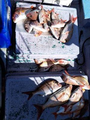 マダイ | 33〜50cm | 10匹 | スボ天秤 | オキアミ |