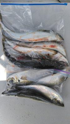 マアジ | 28〜34cm | 8匹 | 撒き餌釣り サビキ7号 ハリス2号 オモリ15号 竿1.8m | アミエビ |
