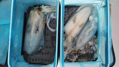 アオリイカを3杯でした!エギが着底しないほど潮早く乗りが悪かったです。 亀岡市の小柳絢也様 |