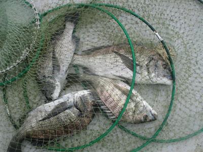 チヌ | 36〜40cm | 4匹 | 短竿 | コーン・オキアミ・アケミ貝 |