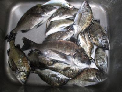 チヌ | 21〜30cm | 20匹 | 短竿 | アケミ貝 サナギ |