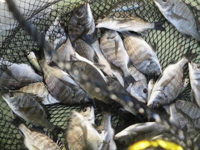 チヌ | 22〜35cm | 52匹 | 短竿 | シラサエビ オキアミ コーン |