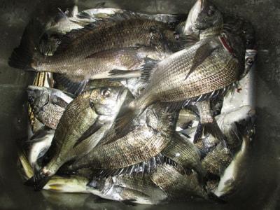 チヌ | 31〜39cm | 3匹 | 短竿 | オキアミ アケミ貝 |