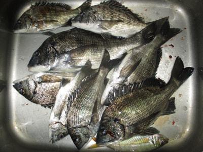 チヌ | 42〜44cm | 2匹 | 短竿 | アケミ丸貝 アケミ貝 |