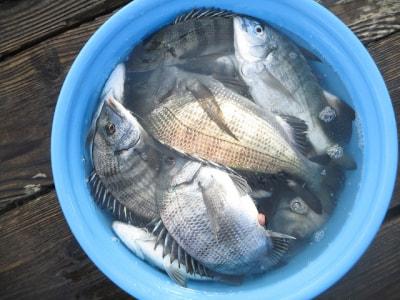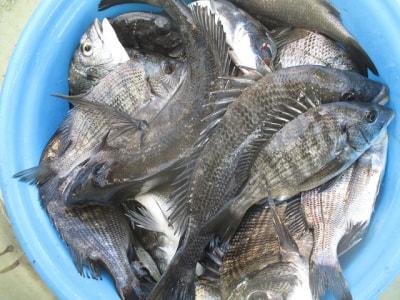 チヌ | 32〜35cm | 2匹 | 短竿 | シラサエビ オキアミ アケミ貝 |