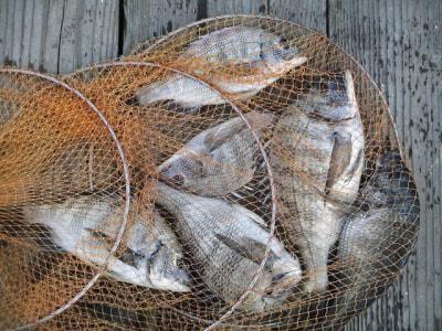 チヌ | 25〜30cm | 6匹 | 短竿 | シラサエビ |