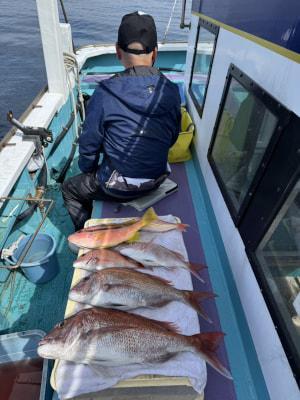 マダイ | 35〜63cm | 7匹 | 天秤 ハリス5号2本針 | オキアミ | |