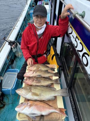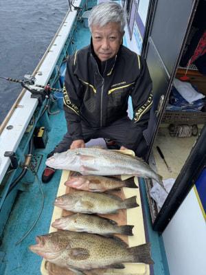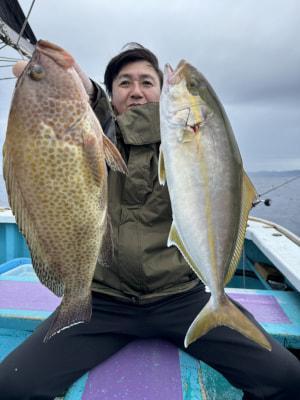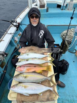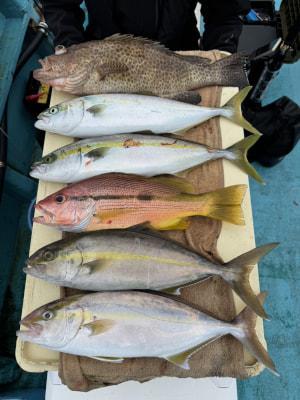| 落とし込みに出船♪ 針ハズレやエサをむしり取られるアタリも多かったですが、 カンパチ(シオ)、オオモンハタ、マダイ、ツバス、ヨコスジフエダイ、オオニベなど釣ってました♪ |