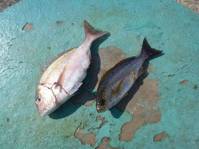 沖一文字内、マダイ、1枚、41cm、イサギ、1枚、34cm、かご釣り 紀の川市、西沢さん |