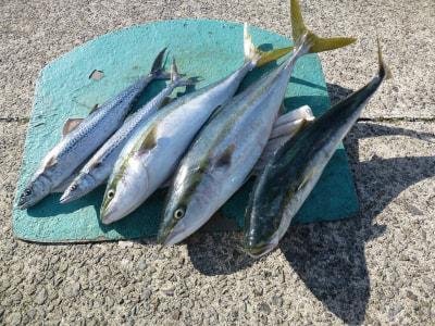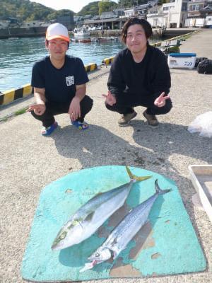 沖一文字内、メジロ、3本、73〜76cm、サゴシ、2本、50〜60cm、ルアー 大阪市、平井さんら |