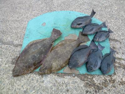 沖一文字外、ヒラメ2枚、58〜61p、喰わせ飲ませ 上田さんの釣果 |