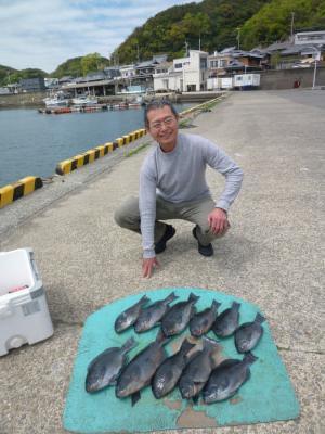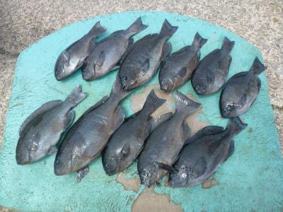 沖一文字内、グレ、11枚、26〜36cm、かご釣り 京都市、中村さん |