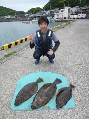 ヒラメ | 52〜64cm | 3匹 | 飲ませ釣り | 活けアジ |