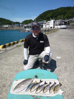 沖一文字外、イサギ、4枚、28〜33cm、ウスバハゲ、1枚、46cm、かご釣り 富田林市、山口さん |