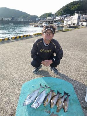 沖一文字は5時45分出船、神谷一文字、磯の出船時間は電話確認下さい。11,12日は秋祭りの為休船させていただきます。14日よりエビ網漁解禁の為しばらくの間沖一文字への渡船はしばらくの間休ませていただきます。活け小アジあります。 |