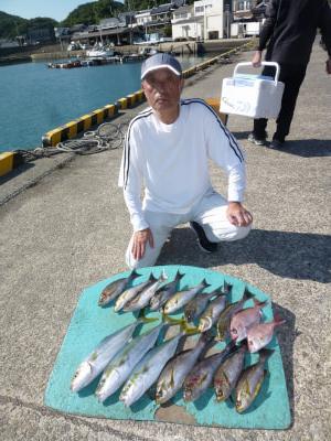 沖一文字外、ハマチ、3本、50cm、イサギ、12枚、26〜32cm、かご釣り 香芝市、今井さん |