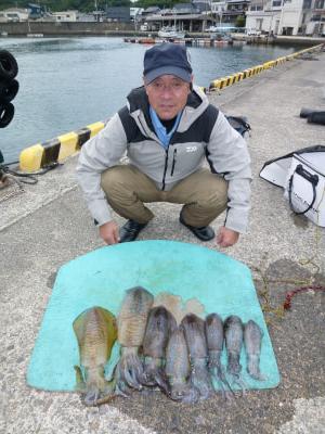 水島、アオリイカ、8杯、0,2〜1`、ヤエン 川西市、田中さん |