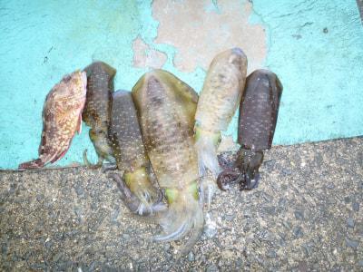アオリイカ | 0.3〜0.8Kg | 5ハイ | ヤエン | 活けアジ |