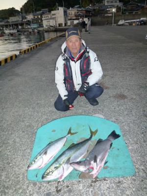 沖一文字内、ハマチ〜メジロ、2本、50〜70cm、喰わせ飲ませ 紀の川市、西沢さんの釣果 |