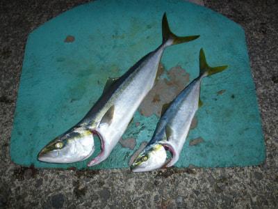ハマチ〜メジロ | 50〜70cm | 2匹 | 喰わせ飲ませ | 小アジ |