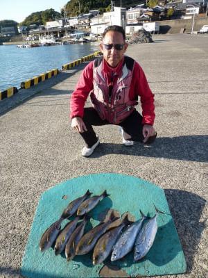 沖一文字内、ヤイトガツオ、2本、35cm、小イサギ〜イサギ、7枚、26〜35cm、かご釣り 和歌山市、住岡さん |